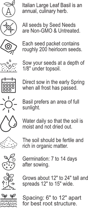 Italian Large Leaf Basil Seeds For Planting (Ocimum basilicum)